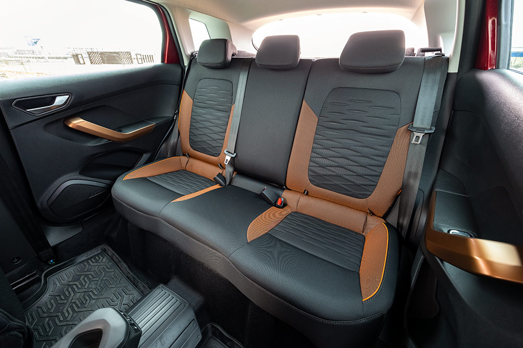 В части используемых в отделке материалов салон Iskra SW Cross не пытается казаться дороже, чем есть, и это честный подход. Пластик жестких пород здесь не редкость, но он аккуратно подогнан и визуально приятен. К тому же интерьер кросс-универсала радует взор яркими акцентами с «бронзой» и оранжевыми элементами обивки сидений.