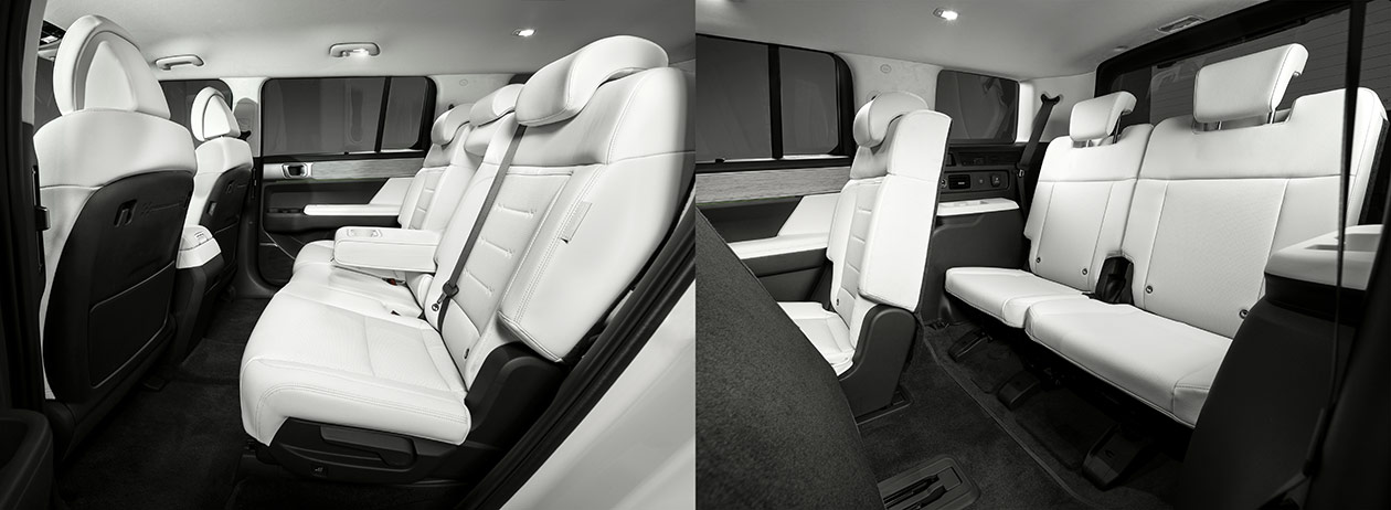В салоне предусмотрены 5-, 6- или 7-местные компоновки. Версия Calligraphy доступна с отдельными «капитанскими» креслами второго ряда. Для пассажиров предусмотрены электроприводы регулировок, подогрев, вентиляция, а в дорогих версиях – массаж и функция нулевой гравитации.
