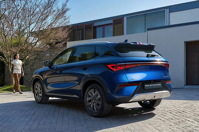 Внешне Atto 3 Evo сохранил узнаваемые черты предшественника, однако внимательный взгляд заметит ряд отличий. Спереди — новые бамперы с тонкой аэродинамической балкой, а сзади — спойлер со сдвоенным стоп-сигналом и перерисованная графика светодиодных фонарей, придающая кроссоверу спортивность. Порт зарядки перенесён к правому заднему крылу — решение, удобное как для европейских стран, так и для китайских реалий.