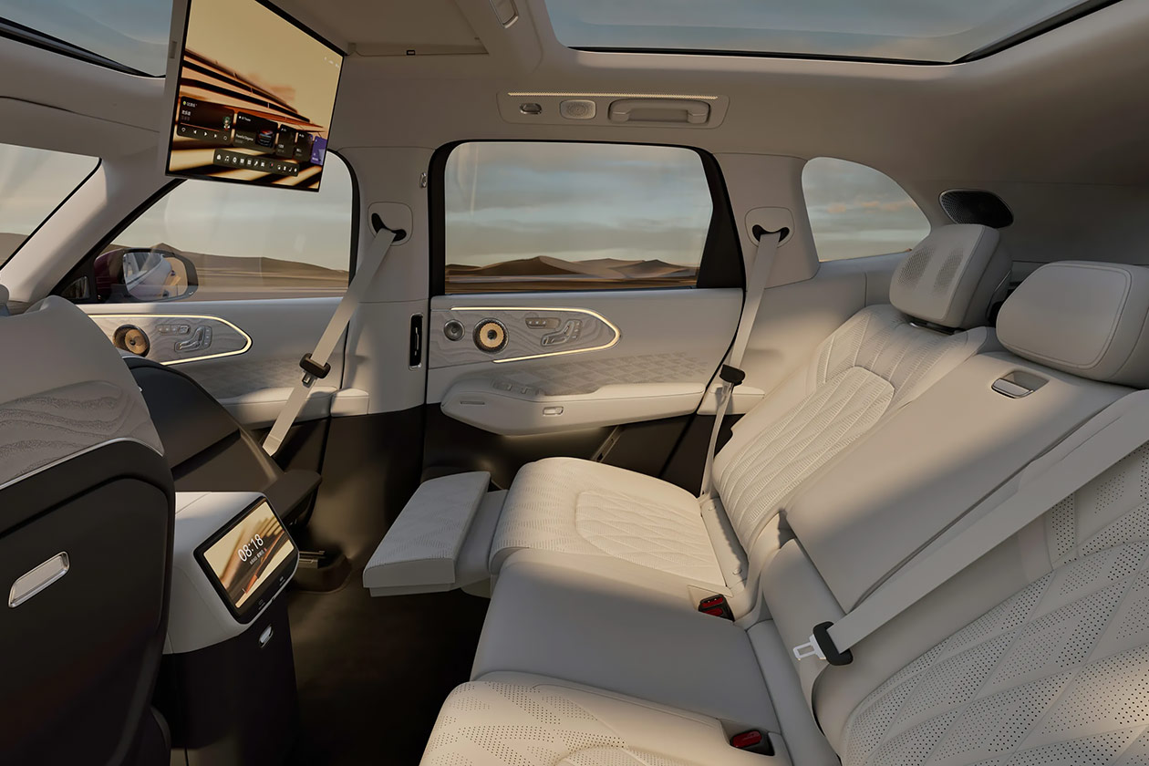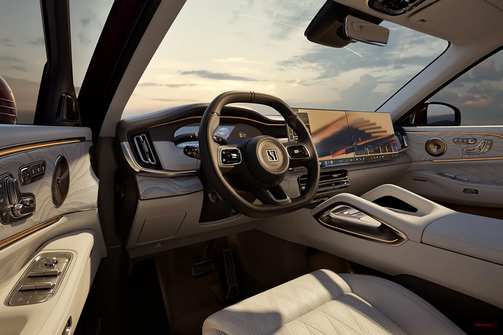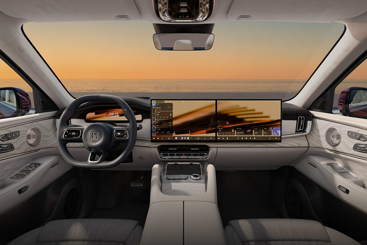 Салон Zeekr 8X выполнен в соответствии с современными премиальными стандартами. Материалы отделки — высококачественная кожа NAPPA, алькантара и алюминий 6061, окрашенные методом микрошлифования элементы интерьера. Водителя и переднего пассажира встречают цифровая приборная панель и центральная консоль, которая может быть оснащена как одним 16-дюймовым дисплеем мультимедийной системы, так и сдвоенным экраном, аналогичным флагманской модели.