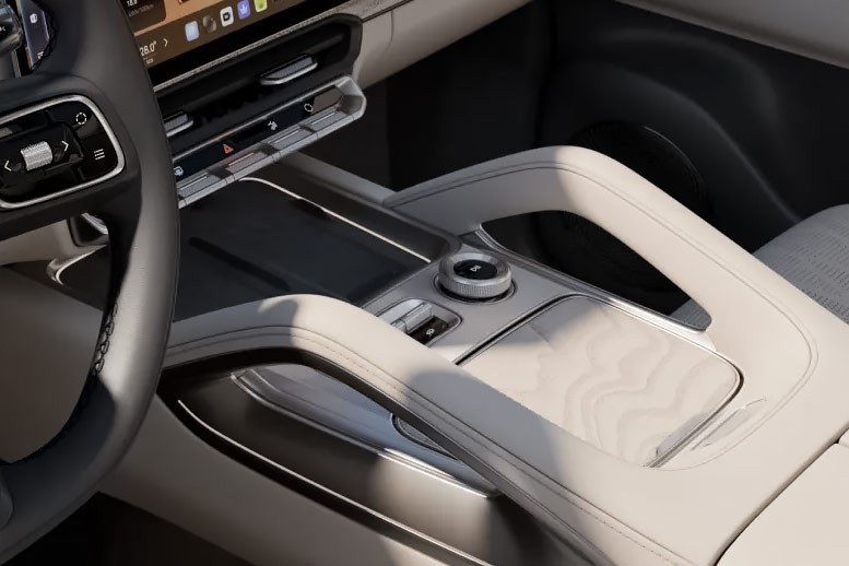 На центральном тоннеле расположены две беспроводные зарядки для смартфонов с функцией охлаждения и блок физических кнопок для управления основными функциями автомобиля, что добавляет эргономичности и удобство использования в движении.